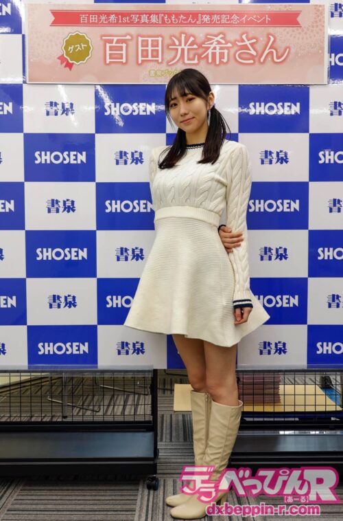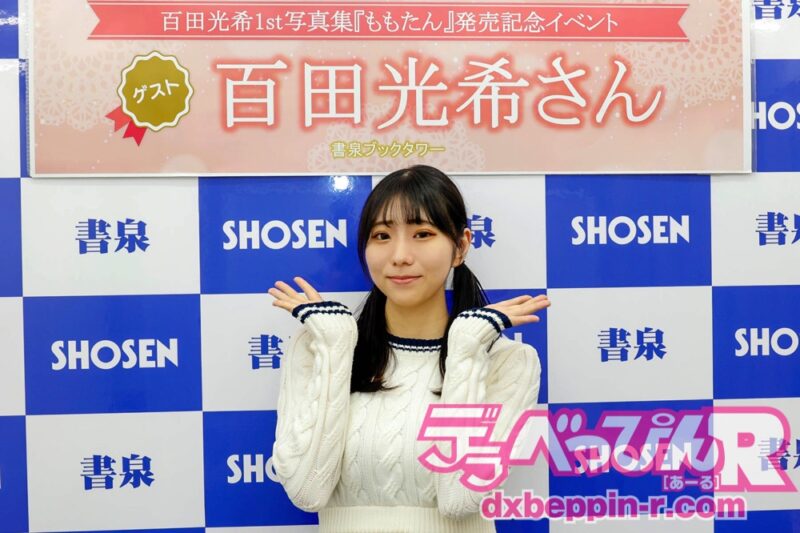「いつも応援ありがとうございます。AVでは見られないプライベート感が出されている写真集なので、いろんな表情をした百田光希を好きになっていただけたら嬉しいです!」