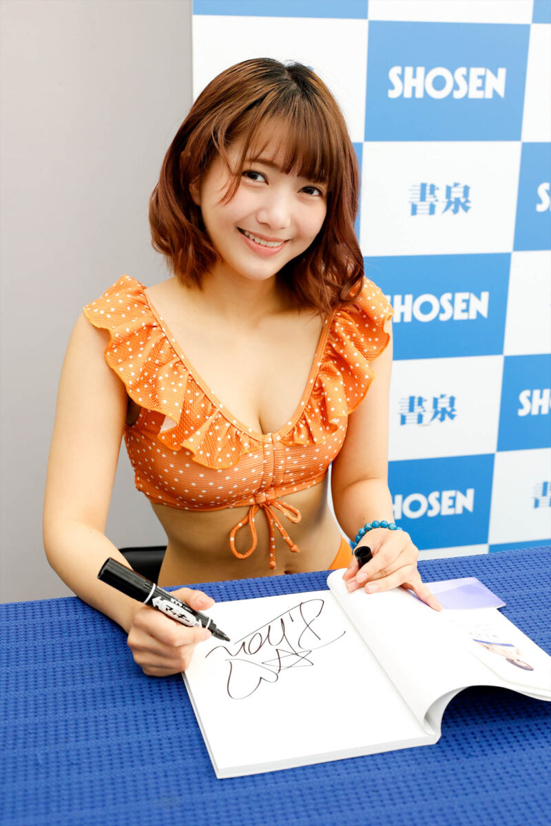 通常、同様のイベントは私服姿で行うことが多いのですが、ファン想いの莉子ちゃんはなんとキュートな水着姿で登場! 引き締まったボディを惜しげもなく公開してくれました。