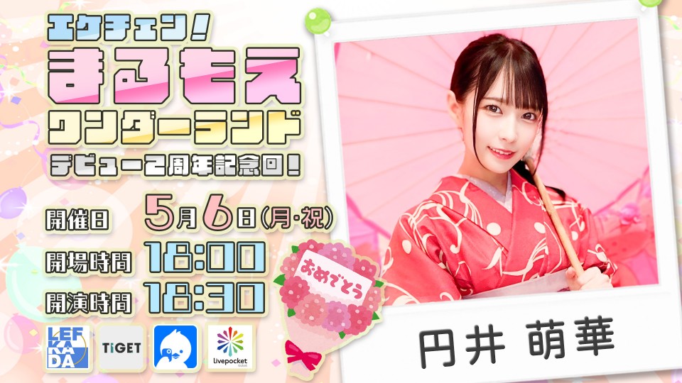 この5月でデビュー2周年を迎えた円井萌華ちゃん。昨年のデビュー1周年イベントに続き、今年もめでたく周年イベント「エケチェン!まるもえワンダーランドvol.5~デビュー2周年をお祝いしよう!~」が、5月6日に東京・レフカダ新宿で行われました!