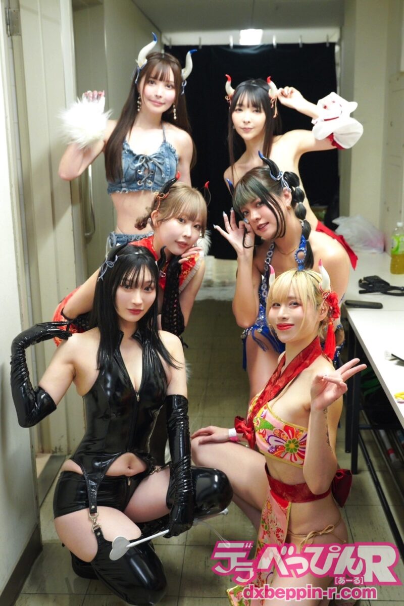 出演者はGUMI姫、しおん共和国姫 、月乃瀬るな姫、桃山えりか姫、MeltyMelu姫の5人。皆んなスッパダカ共和国の姫で姫って事で、美しい姫だらけ。ステージ映えは最高だった。姫らしくしおらしいかと思いきや、ステージ上ではアクティブに動き回って、ヤンチャ姫って感じでお客様達を楽しませてくれてました。