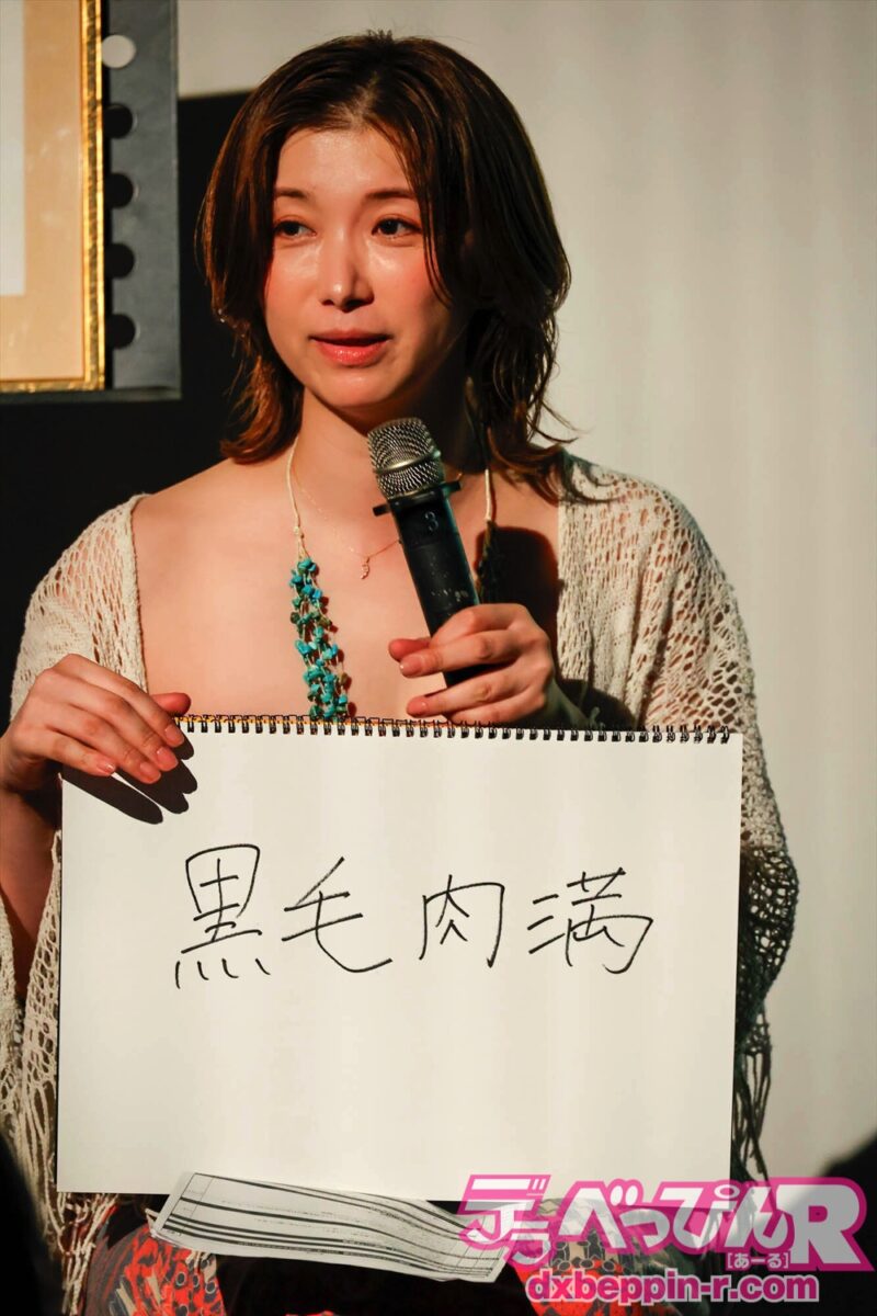 ご機嫌に乾杯した後は、「かりくびトーク」と題したテーマトークのコーナーから開始。まずは「自分のアソコを四文字熟語で表現すると」という珍妙な質問が出され、これには「黒毛肉満」と美味しそうな名前を付けてくれました。