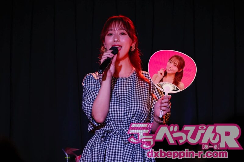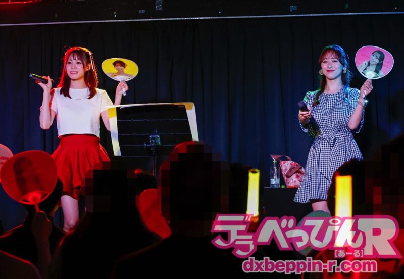最後は2人がオリジナル楽曲を歌いライブも披露! サイリウムやうちわが振られてフロアは大盛り上がり。