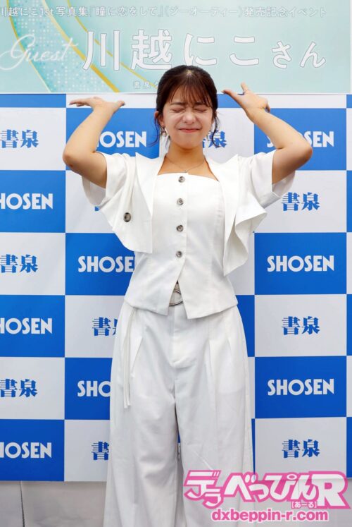 「今回の写真集で一番印象的なのは表紙だと思うんです。この表紙に込められたのは、まず、私の顔を知ってほしいということと、タイトルの『瞳に恋をして』をひらがなにすると、『ひとみにこいをして』で、『にこ』の文字が入っているんです。瞳を見てほしいからこそ、アップで私のキレイな目を見てほしいという思いが込められています。私らしさや、表情豊かな一面も見られると思うので写真集を見て楽しんでほしいです。これからが新たな女優としてのスタートだし、ストーリーがはじまったと思うので、今後、長い期間頑張る姿を見てほしいです。応援よろしくお願いします!」