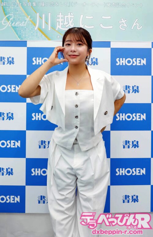 清楚な白の私服姿で登場したにこちゃん。名前通り、いつもスマイルがステキで超キュート!