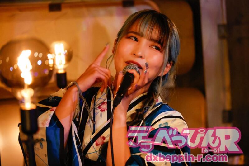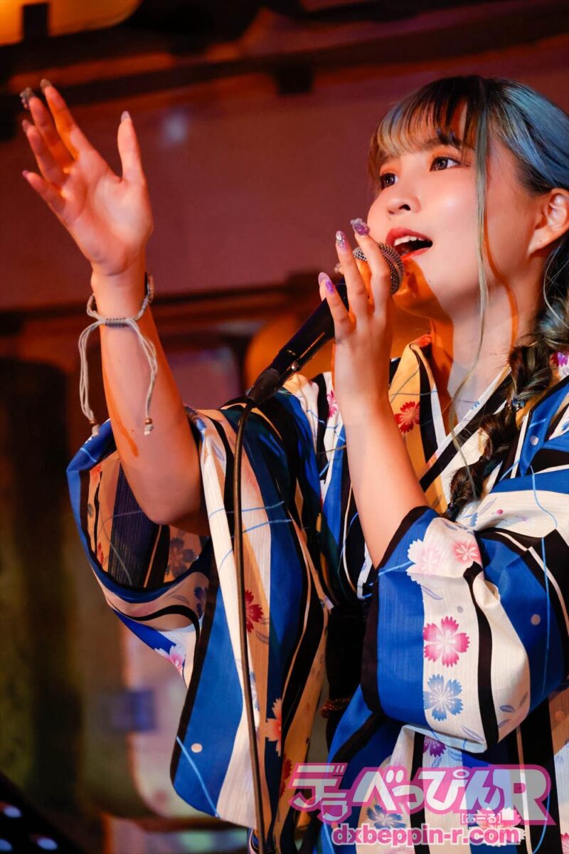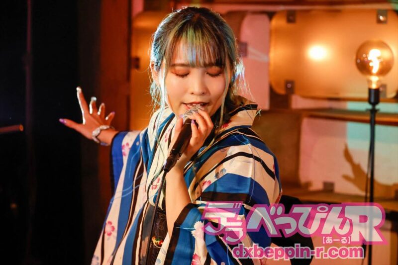 MCでは、「夏を感じられた?」とファンに聞くと拍手が起こり、続けて「今年こそ、浴衣で花火大会やお祭りに行きたいですよね」とポツリ、そして、ここからは椅子に座り、『you』(癒月)を切なく、オリジナルの『きえてく』を情感たっぷりに歌い、泣かせてくれます。