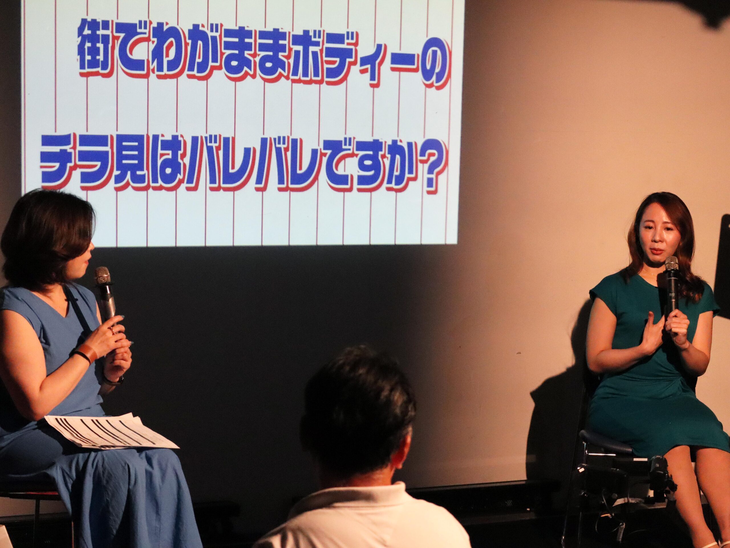 前半戦は『わがままボディートーク』。わがままボディーな熟女たちに、その艶めかしい肉体の秘密を打ち明けてもらっちゃおうというコーナーです。「街でわがままボディーのチラ見はバレバレですか?」から始まり、「雰囲気が怖い人でもチラ見はしてる?」「初ブラはいつですか?」など、気になる質問が続々飛び出します。