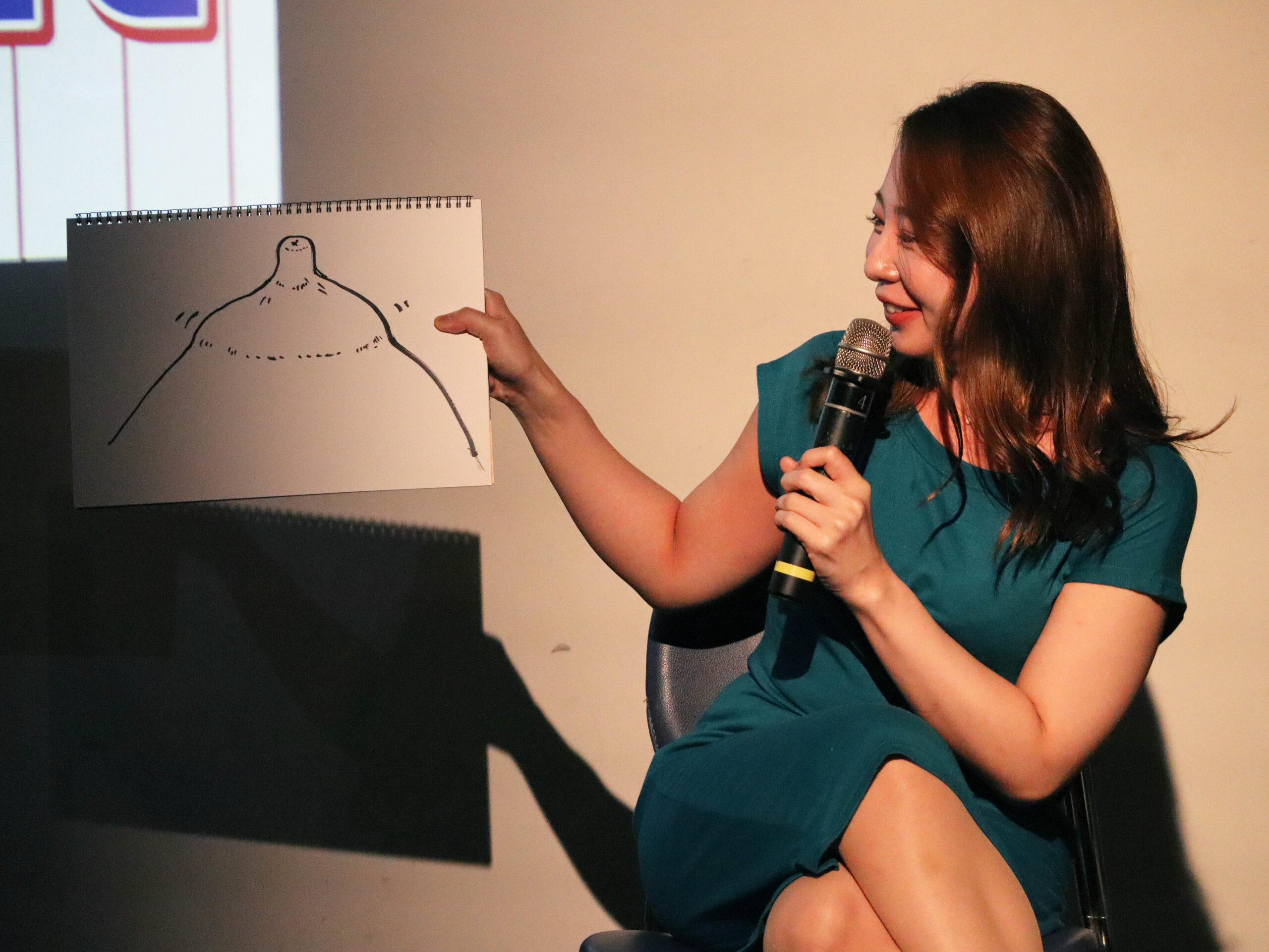 さらに寺島さんは、「プロフィール上ではJカップだけど本当はKカップ」であることを告白。食べ物に例えると、柔らかいお餅のようなおっぱいだそうですが、20歳の頃にもう垂れ始めていてブラから乳輪がハミ出てしまうのがコンプレックスだったとか。でも、そのコンプレックスがプラスになるのがAVの良いところであるとも語っていました。