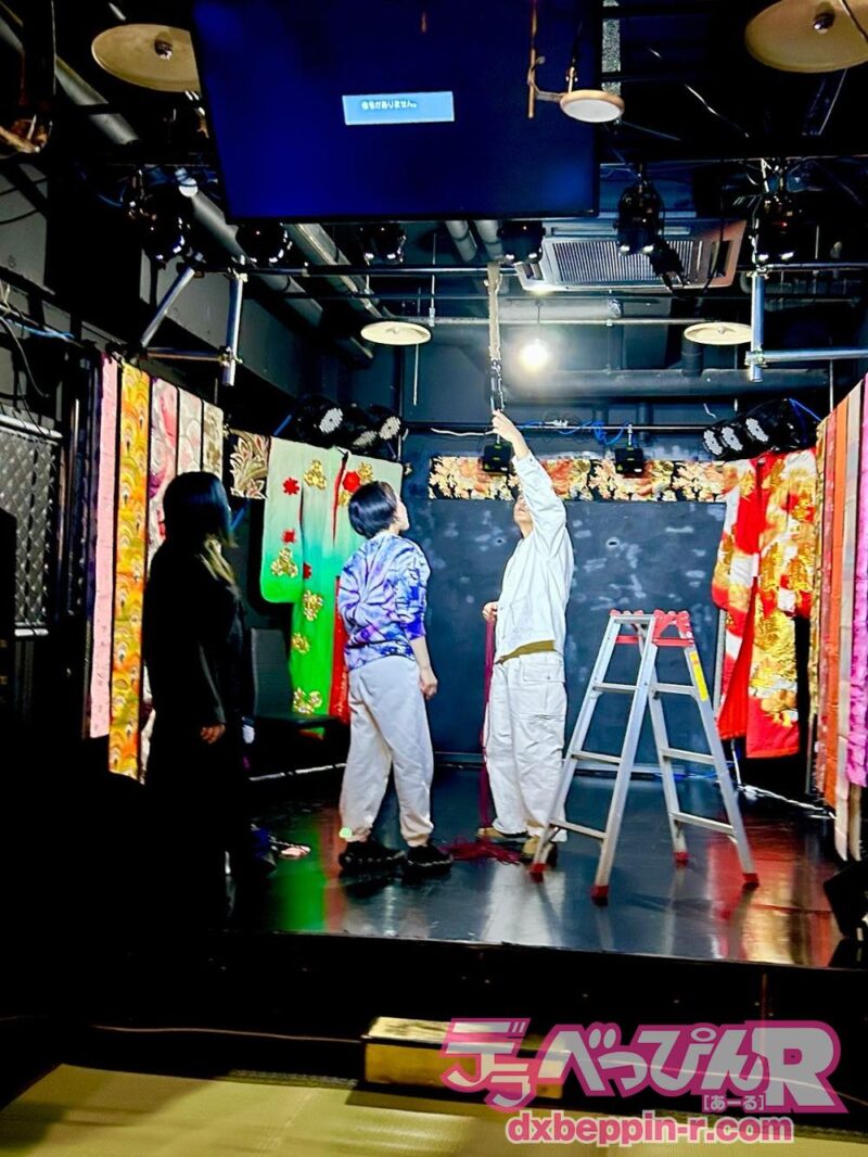 イベント当日は格子戸さんがホテルまでお迎えに来てくれて現場入り。想像していたよりも遥かに広い場所。単なる箱じゃなくて吊床もしっかる作れるし、照明もPAさんも居るし、こんな場所で緊縛やらせてもらえる事に感謝。