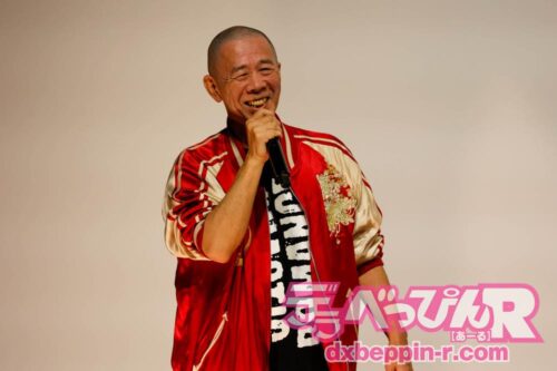 舞台挨拶の後半では、撮影裏話やエンディングについての考察などで盛り上がり、ピンク映画についてどう感じているか、髙原プロデューサーから質問を受けたあいりちゃんは、「好きです。なかなか経験できることじゃないので、すごくありがたいなと思いますし、もともと自分の体に自信がないので、こういった大きなスクリーンで自分の姿が映し出されるのは、すごく勇気がいるなと思ったんですけど、実際に映像を見て、『すごく良かったよ』という反応をいただいたり、もう1人の私として見る分には、すんなり受け入れられました。だから、希島あいりとしてはちょっと恥ずかしいってなっちゃいますね」とコメントしました。