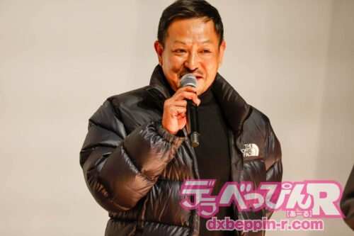 まず、登壇者の自己紹介があり、髙原プロデューサーから「エッチですごい女でしょ」と言われたあいりちゃんは、「スケベな女を演じました」とコメント。撮影現場の雰囲気については、「和気あいあいとしていました」と語り、大画面で上映を観た際の感想を「あらためて大画面での上映を観ると、感動があり、笑いもありで楽しかったです」と語りました。