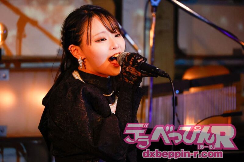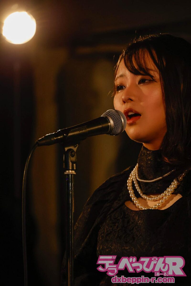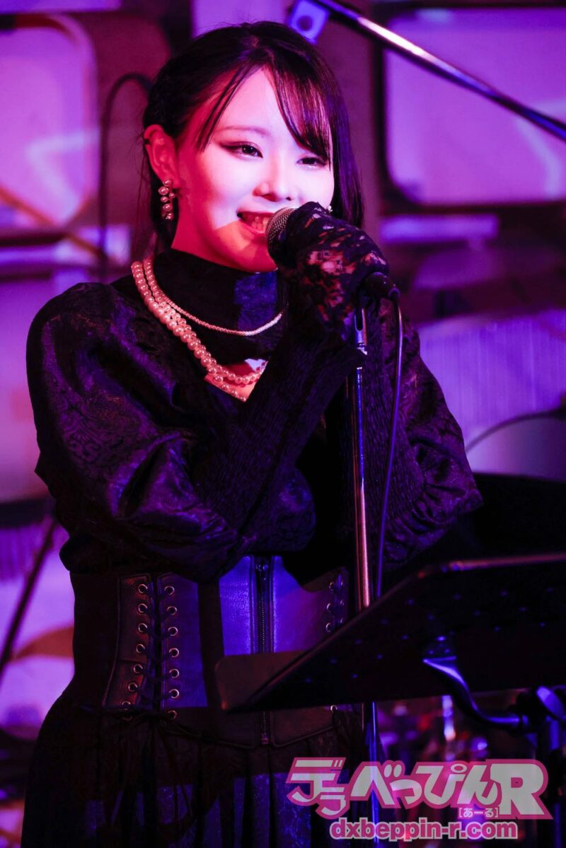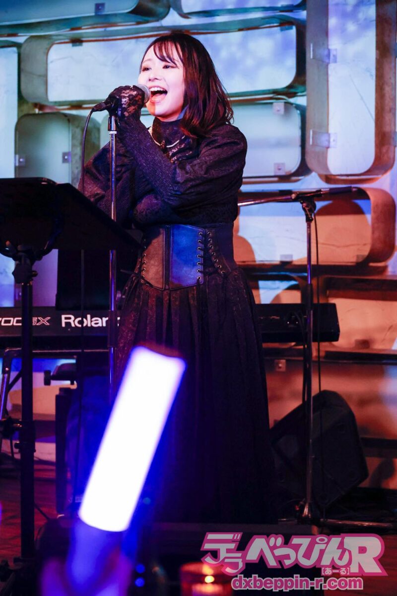 ライブは佳境に入り、最後の曲を歌う前に「私が音楽活動をする中で、尊敬している方がいて、その人に『いつかあなたの歌を歌わせてほしい』と言ったところ、『やればいいじゃん』と言われました(笑)。『それじゃあ、歌います』と言ったら、『楽しみにしているよ!』って返してくれたんです。彼女の存在があったからこそ、私はこのステージに立てていると実感しています」と言い、所属事務所の先輩である枢木あおいちゃんの『白夜に月』を熱唱。その歌声と思いは、あおいちゃんにも届いたことでしょう!