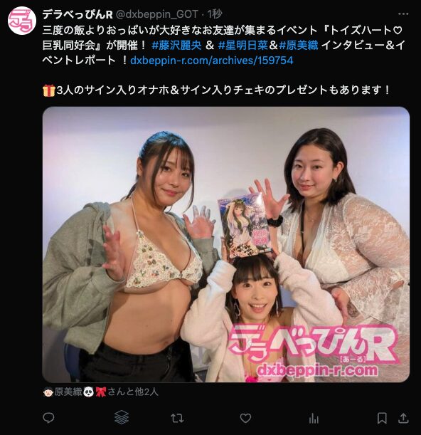 三度の飯よりおっぱいが大好きなお友達が集まるイベント『トイズハート♡巨乳同好会』が開催! 藤沢麗央&星明日菜&原美織インタビュー&イベントレポート
