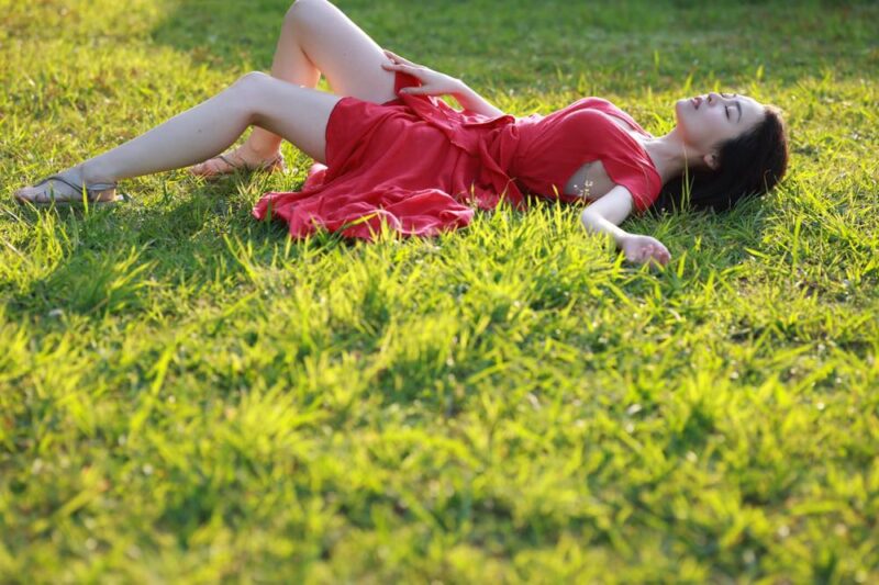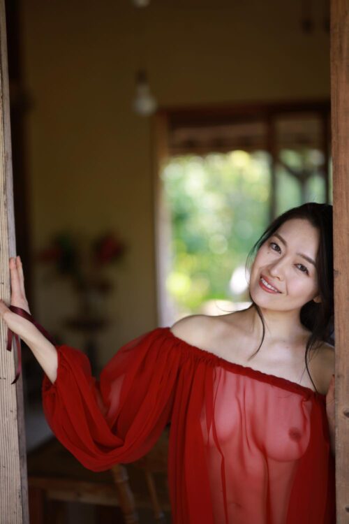 また、草原で赤い衣装を着て撮った写真は、配色がとてもキレイでした。この時は、飛んだり跳ねたり、即転したりする予定はなかったのですが、西田さんが『ハイジみたいに楽しくやってみて』と言ってくれたので、気分が上がりバレエのようなジャンプをしました。楽しい撮影でしたね」