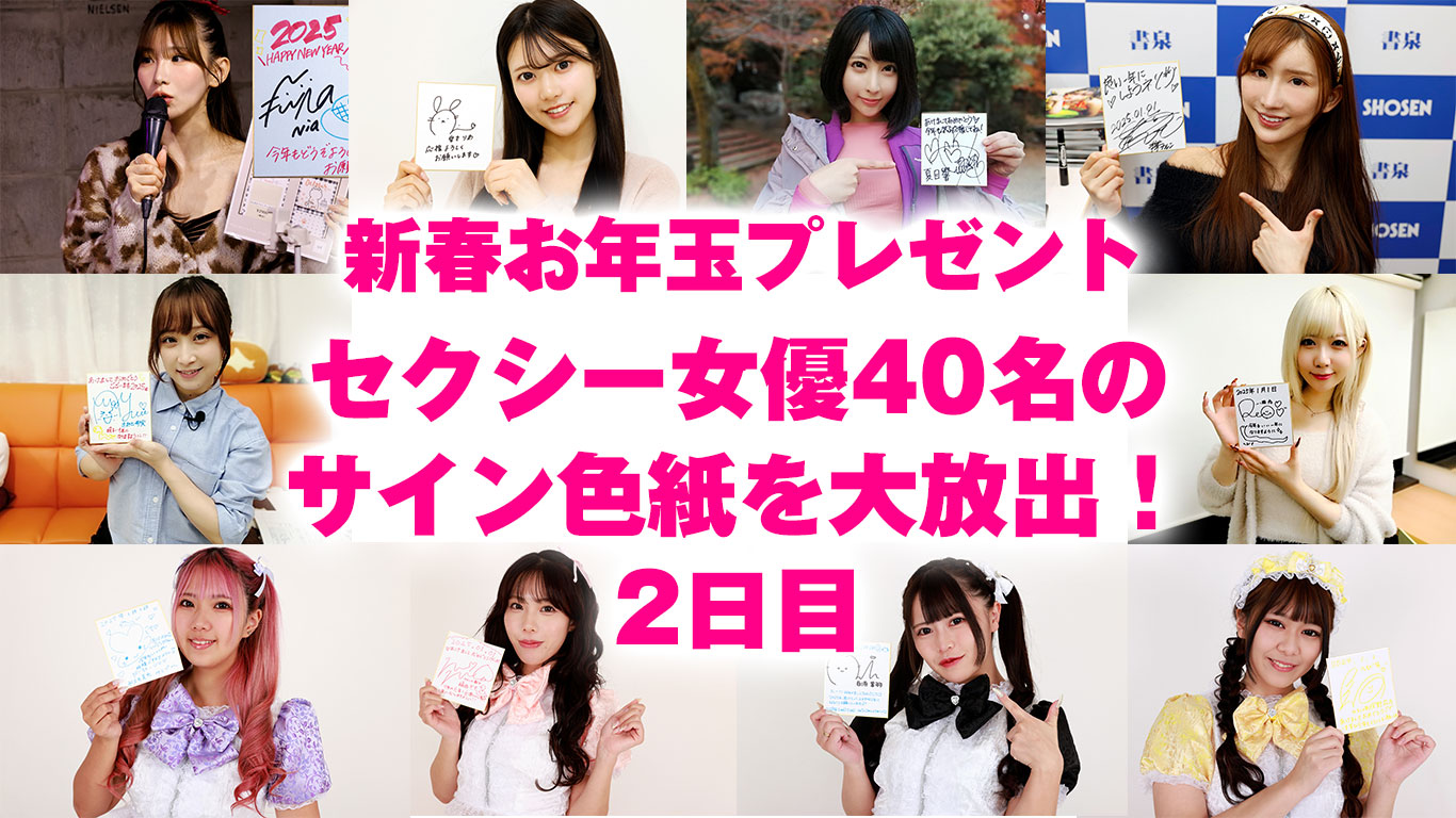 【2025年新春お年玉プレゼント!!セクシー女優30名のサイン色紙を大放出!】八木奈々、うんぱい、輝星きら、糸井瑠花、三木環奈、円井萌華、桜木美音、真白みのり、美澄玲衣、紺野ひかる【元日はこの10名!】