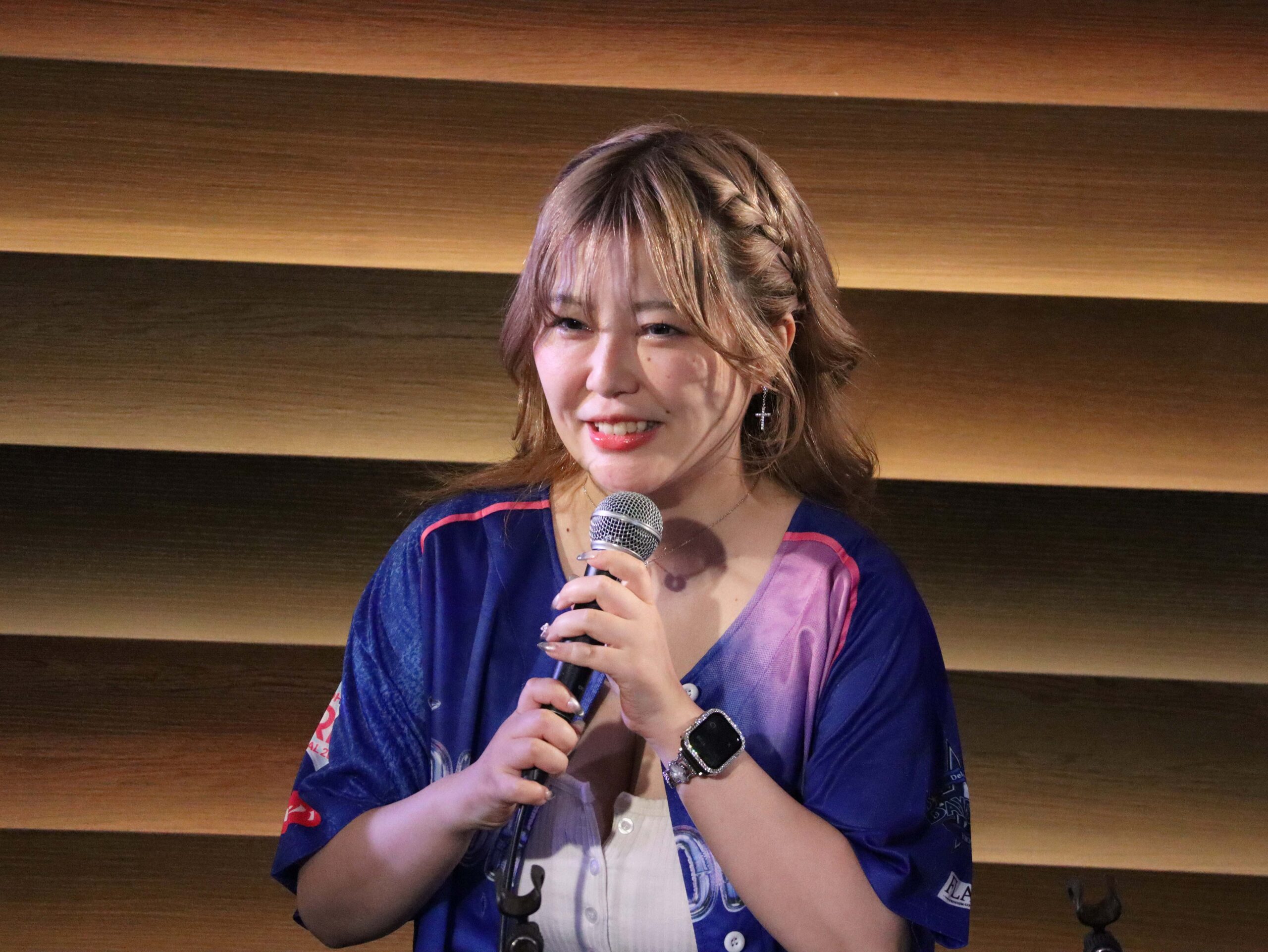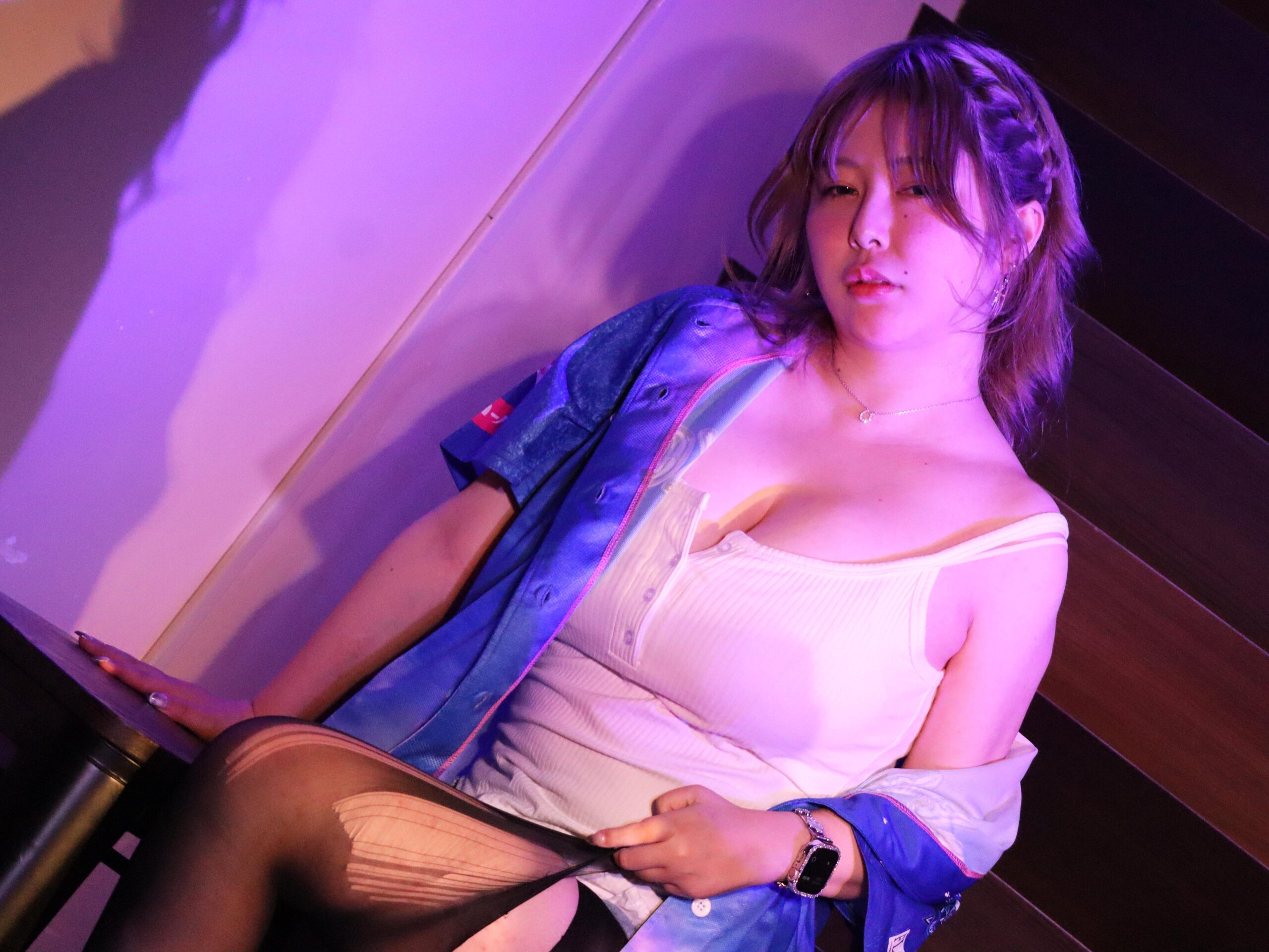 最後は超お楽しみの写真撮影コーナー『ブルー・ライト・ヨコハマ』。あの名曲のタイトルにちなんで青いライトの中で艶めかしくポージングをするというもの。伊織さん、白衣の下に隠された黒のランジェリー姿を惜しげもなく見せつけてくれました。