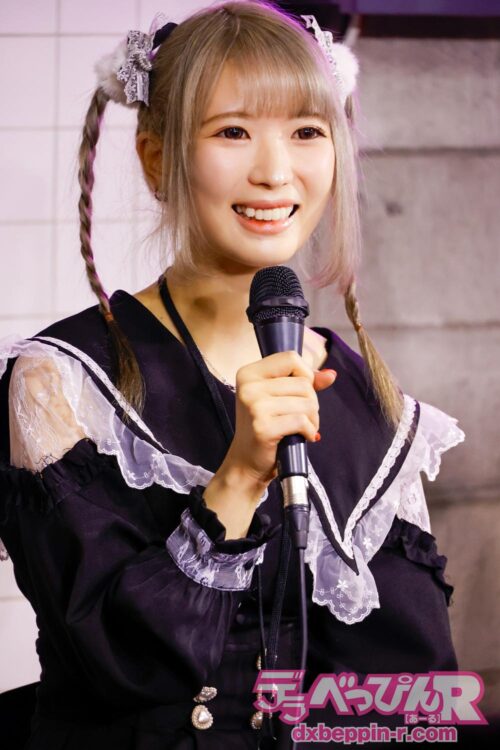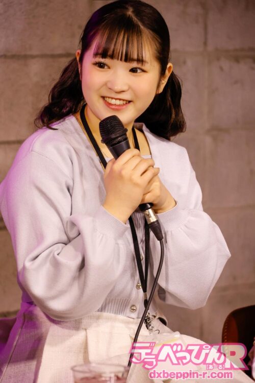 その後は、イベント初登場のさくらちゃんがフィーチャーされ、先輩方からエッチな質問を受けます。さくらちゃんはキュートな表情を崩さずに大胆な発言を連発し、ファンの注目を集めました。