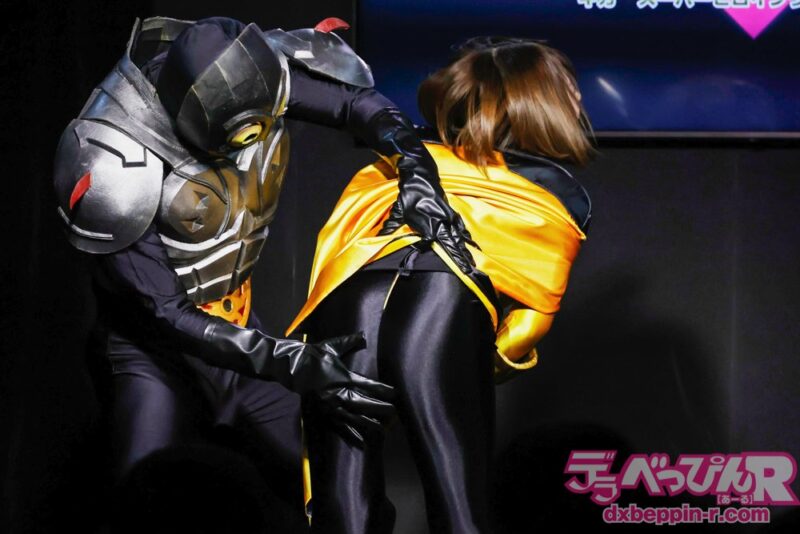 そして、勝利を宣言する戦闘員の大胆なサービスには、観客も大興奮。ヒロインたちのお尻を客席に向けて撮影を要求、辱めを受けるヒロインたちの姿が一斉にカメラに収められました。