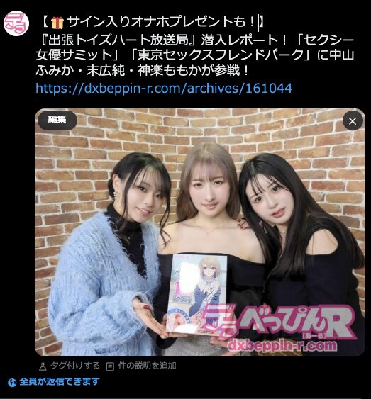 今回はゲストも超豪華!なんと、中山ふみかちゃん、末広純ちゃん、神楽ももかちゃんという、LIGHTの超人気女優さんが3名揃い踏み!デラべっぴんR、こちらの収録に潜入してまいりました!