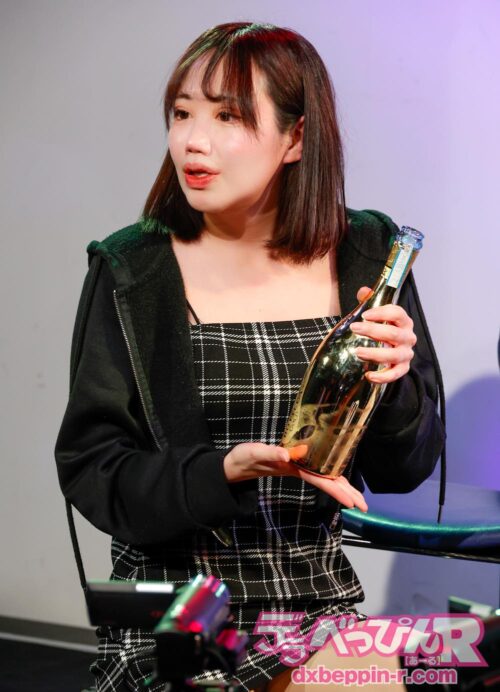 トークも佳境に入ると、飲みも加速、シャンパンを開封してファンと再び乾杯しました。ここで撮影タイムを挟み、後半戦へと続きました。