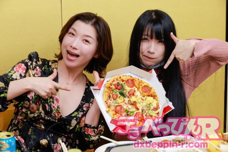 心理テストで盛り上がっているとピザが到着。ピザを食し、ビールを飲むイベントに「休日か!」とご満悦のカトツバさん。