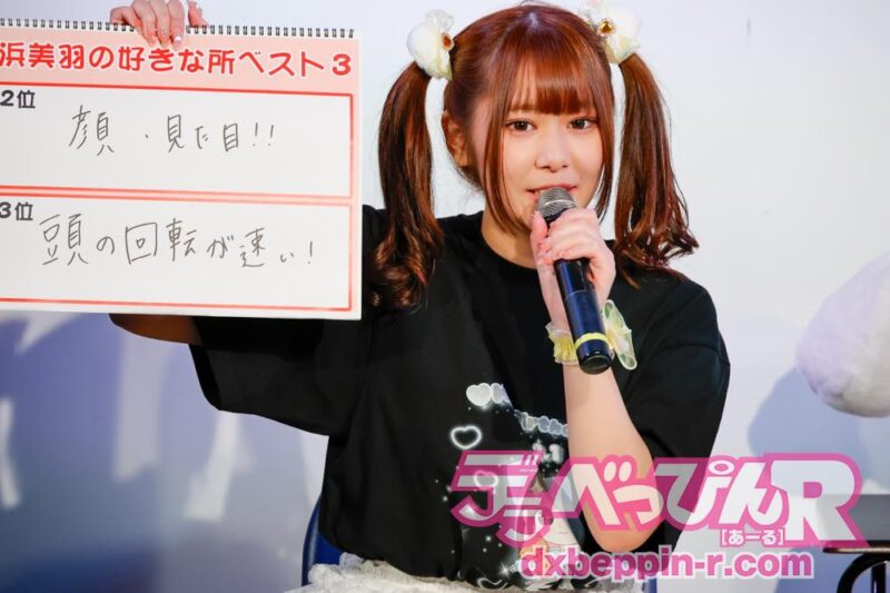 トークコーナーでは、花乃ちゃんが「美羽ちゃんの好きなところベスト3」を発表。3位は「頭の回転が早い」、2位は「顔、見た目」と発表。「頭の回転が早い」理由として、撮影現場で「仲のいい女優さんは?」と聞かれると、花乃ちゃんが「白浜美羽」と答えることが多く、そのたびに「面白い子だね!」と言われるのだとか。確かに美羽ちゃんのトークはキレッキレ。ただし「酔うと全然面白くなくなる」と意外なエピソードも飛び出しました(笑)。