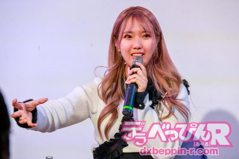ギャル系のみとぴょんですが、真面目で人柄の良さがうかがえるトーク内容となり、前半は終了。撮影タイムをはさんで後半に移ります。
