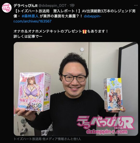 今回のゲストは、今年で芸歴26年目を迎えるレジェンドAV男優・森林原人さん。出演本数は約3万本にものぼるという森林さんに、MCの2人も興味津々で質問を投げかけていました。