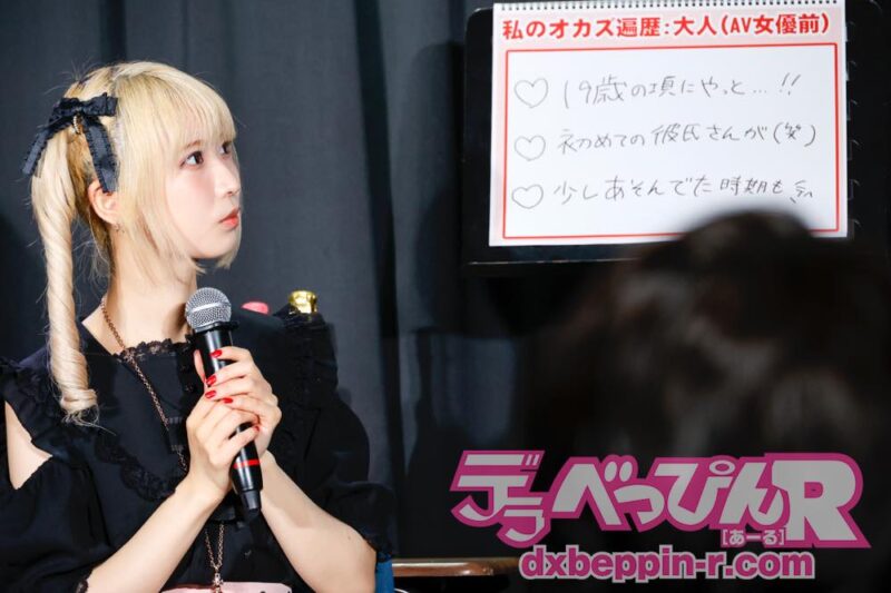 「AVを知ってからオナニーははかどりましたか?」との質問には、「はかどりましたね!」と照れながらもキッパリ。続けて「中学生の頃はまだまだ恥ずかしい時期でした」と、初々しい一面もチラリ。ファンはそんなギャップに心を掴まれた様子でした。