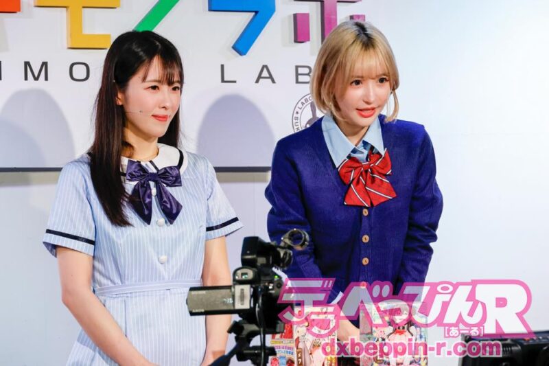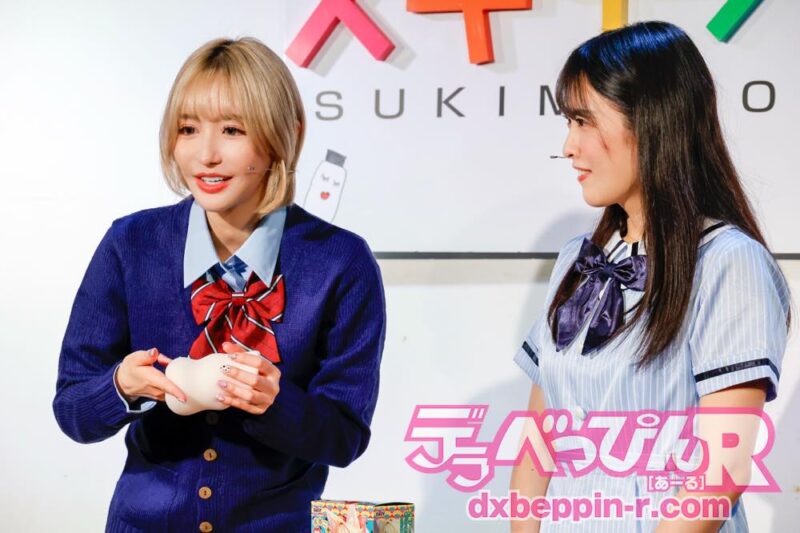 この「スキモノラボ」は、2012年7月から放送されているアダルトグッズ通販番組で、セクシー女優が商品の魅力をエッチに紹介する人気番組です。今回、イベントに出演したセクシー女優は、同番組のエースである百永さりなちゃんと、今後、番組での活躍が期待される祈山愛ちゃんです。
