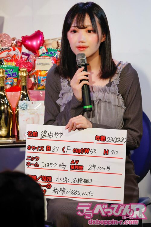 最初はややちゃんの自己紹介から開始。「ニックネームは『こはややさん』や『鳩』と呼ばれています。AV業界歴は萌華ちゃんよりも3ヶ月デビューが遅いから2年10ヶ月。7月で3周年です」とのことなので、7月には盛大なデビュー3周年記念イベントをレフカダ新宿で行ってほしいものです。