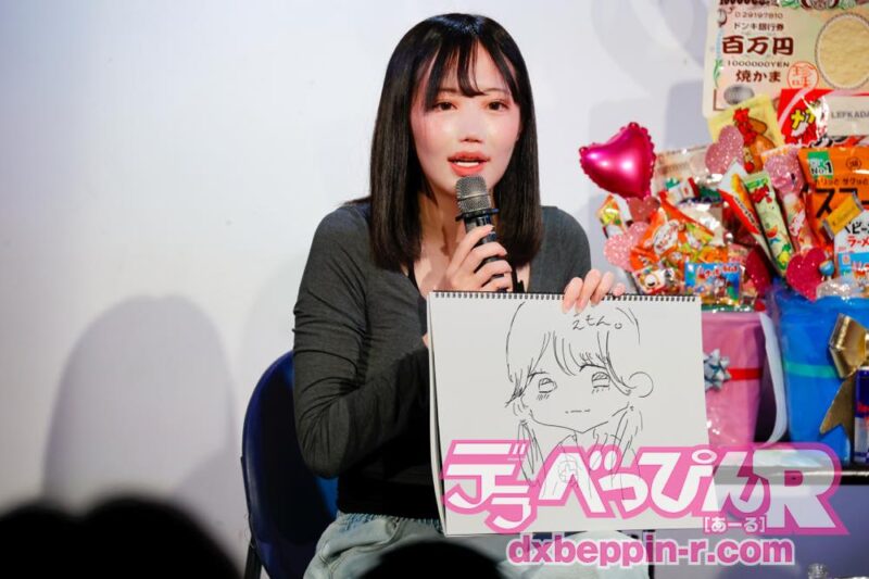 このテンションのまま『エッチな自己紹介』に突入すると、「エッチな特技は百ます計算と漢字の書き取りです。好みの男性は、私が算数と国語が得意なので、理科と社会が得意な人。お互いの得意分野で埋め合っていきたい。おかずは親子丼。変わった性癖はふたなりの漫画が好きで、私もふたなりになりたいんです」と語り、エロとユーモアの両面でしっかりと爪痕を残しました。