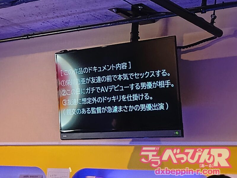 このイベントは、AV監督のノアルカさんが撮影した『栄川乃亜 お友達が見ている前で生ハメ まさかの中出しドッキリ!!』を上映。出演者の乃亜ちゃんとあもんちゃんが、撮影時のエピソードを織り交ぜながらコメント解説する、趣向を凝らした企画となっています。