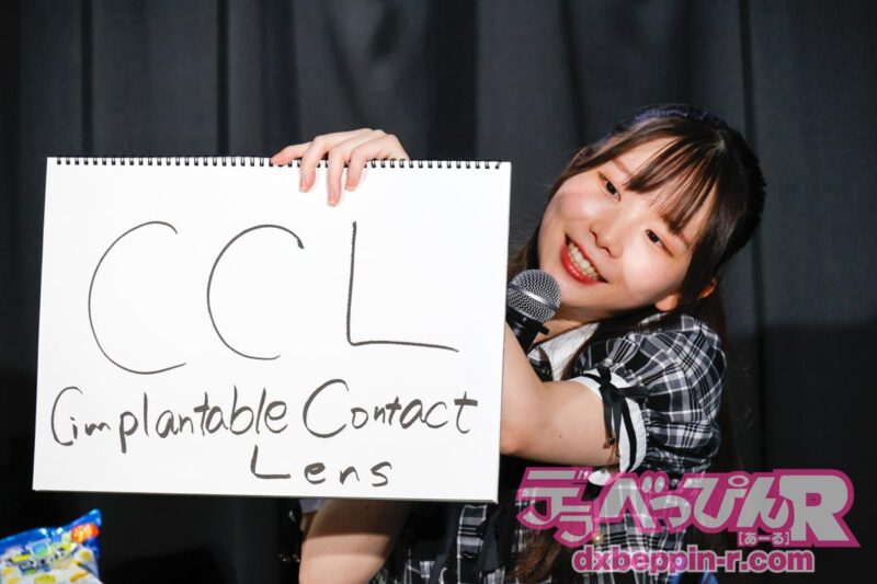 ゆずちゃんのプレゼンは、「ICL」という驚きのひみつ道具。着衣状態でも男性器の大きさが分かるという大胆なアイデアです。「このレンズを目に移植すれば、目の前にいる男性器のサイズが一目瞭然。エッチする前に好みの大きさか分かるし、逆に男性には大きさは関係ないってことを広めたい」と熱弁。