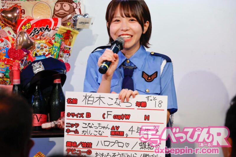 「エッチな特技は乳首舐め、オナニーの頻度は週8、おかずはエロマンガ。変わった性癖はおしっこが好きで、初めての精通は小便小僧」と話し、「性の目覚め」を「精通」と表現。「『トリビアの泉』で小便小僧を見て興奮した」とのエピソードに、会場は爆笑です。最後に「柏木こなつちゃんに一言」では、「レフカダなんかに来てくれてありがとう」と照れ隠しで「なんかに」と言いつつ、こなつちゃんが「こはややだから来た!」と返すと、「ありがとうございます」とお礼。2人の友情が垣間見られる温かい瞬間でした。
