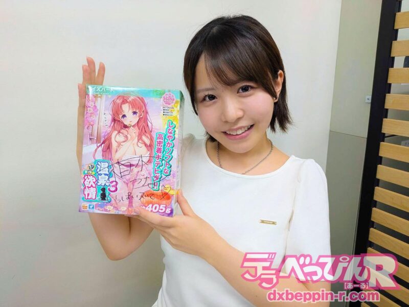 後半ではトイズハートの新作オナホール「温泉欲情3」を紹介。こちらのオナホは人気シリーズの最新作で、ボテヒダ&ゾリ刺激が特長です。こなつちゃんはオナホを手にすると「にゅいーん、くぱぁ」とその感触を大胆に楽しんでいる様子。「イイ感じです。絶対に気持ち良い!」とオナホに興味津々でした。