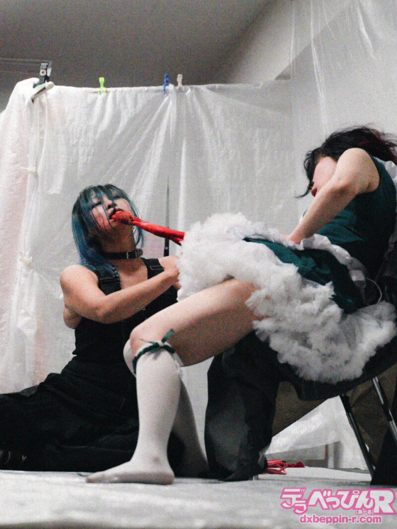 さて。新会場のトリステージを演るのは、内山沙千佳Produce「◻︎◻︎ちゃんの居ない日常」で出演が内山沙千佳、渡邊ミリ、鉢山コボル氏の3名。猟奇漫画家の氏賀Y太先生公認のリスペクトオマージュショーなんだけど。いかんせん擬似とは言え、とにかく内臓と血がいっぱい出てくるステージなもんだから写真は載せられないし、生放送中継も撮れないわって感じ。ステージとしては沙千佳もミリちゃんも慣れてるから上出来なんだけど、その場にいた人しか見れなかった貴重なステージ。