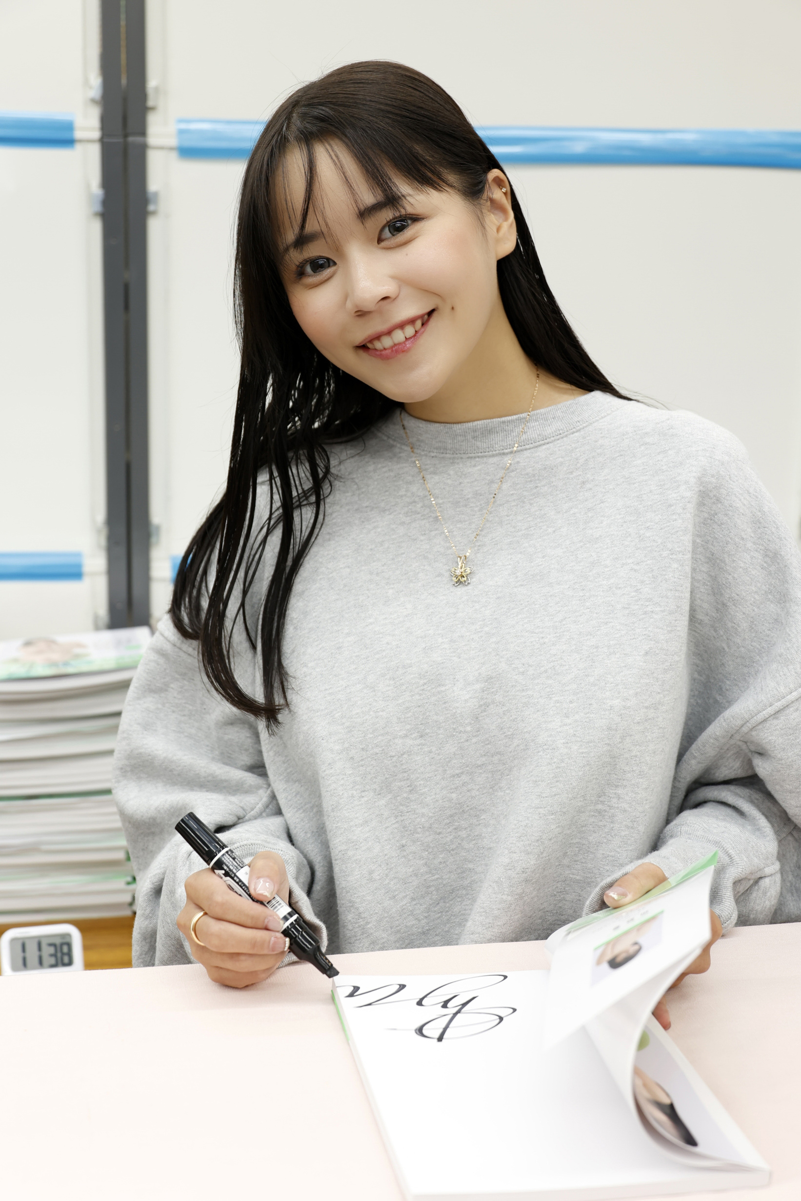 憂ちゃんはカジュアルな私服を着て、満面の笑みで登場。そのキュートな憂ちゃんをイベント前に取材。ポーズブックに込めた想いや撮影エピソードについて、生き生きと語ってくれました。