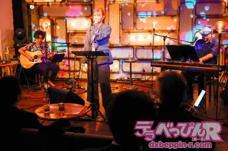 1曲目は『ボーイフレンド』(aiko)。平方さんの柔らかなキーボードに、仁愛ちゃんの透明な声が重なります。サビではまっすぐに伸びる高音がフロアを満たし、繊細な息遣いまでもが音楽の一部として響いていました。