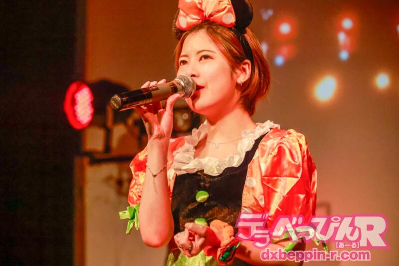 今回の出演者は現役大学生で新人グラビアアイドルの神喜ミアちゃん、セクシー女優の豊岡さつきちゃん、稲森美優ちゃん。3人はアイドルやアーティストのカバー曲をそれぞれの個性で歌い上げ、会場を大いに盛り上げてくれました。