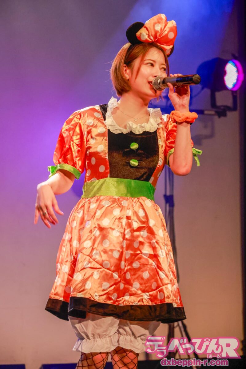 続いて登場したのは豊岡さつきちゃんです。ハロウィン衣装のさつきちゃんが登場。こういった演出はさつきちゃんの醍醐味であり、今回も抜群の歌唱力でファンを虜にしました。情感たっぷりに歌うさつきちゃんの姿に、観客は息を呑みます。カバー曲を情感たっぷりに歌い上げる一方、MCではユーモアあふれるトークで笑いを誘い、笑顔でMCするさつきちゃんの様子に、硬軟自在な魅力で観客を楽しませてくれました。