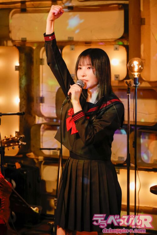 セーラー服姿のじゅんちゃんがステージに現れると、客席からは「サイレントヒル」の声が上がりました。ホラーゲームをモチーフにした衣装で登場するところから、じゅんちゃん独自の世界観が早くも漂います。
