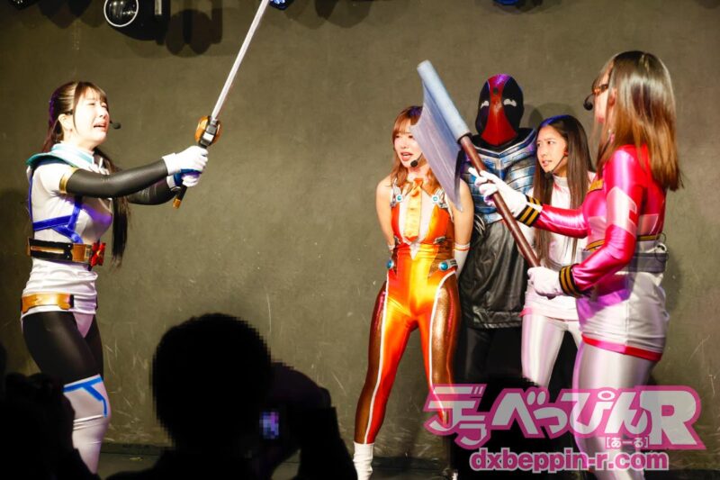 さらに理系エリート戦闘員が開発した「ヒロイン操り電波」を発動。ふわりちゃんとまちちゃんは操られたように立ち上がり、先ほど失神した菜々ちゃんとのぞみちゃんに近づき、武器で2人を攻撃! 友情が崩壊する衝撃の瞬間に、観客は息を呑み、緊張が頂点に達します。