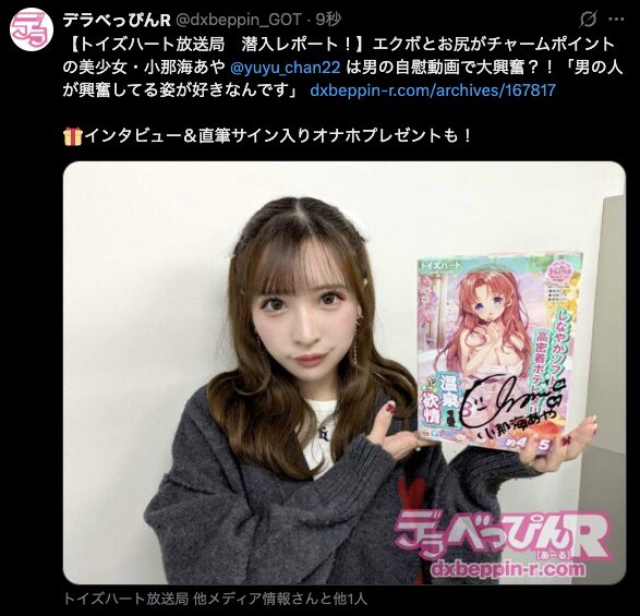 今回のゲストは、2023年に電撃復帰してからますます絶好調の小那海あやちゃん。ブースでの堂々たる受け答えには「さすが!」のひと言でしたが、実際は緊張で汗びっしょりだったとか。