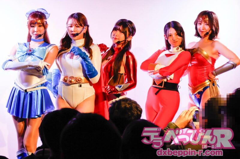 今回ステージに立ったのは、小坂ひまりちゃん(パワーウーマン)、有加里ののかちゃん(コスプレイダーR)、わか菜ほのちゃん(ワンダーレディー)、芦名ほのかちゃん(セーラーアクアス)、宇流木さららちゃん(ダイナフェニックス)の5名。