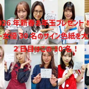 2025年も「デラべっぴんR」をご愛読いただき、誠にありがとうございました。日頃の感謝の気持ちを込めて、1月1日から1月3日までの3日間、セクシー女優のサイン色紙プレゼント企画を開催します。本企画は、連日イベント取材を続ける当サイトならではの特別企画です。