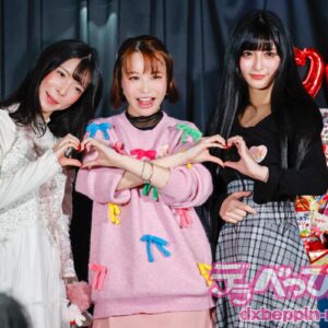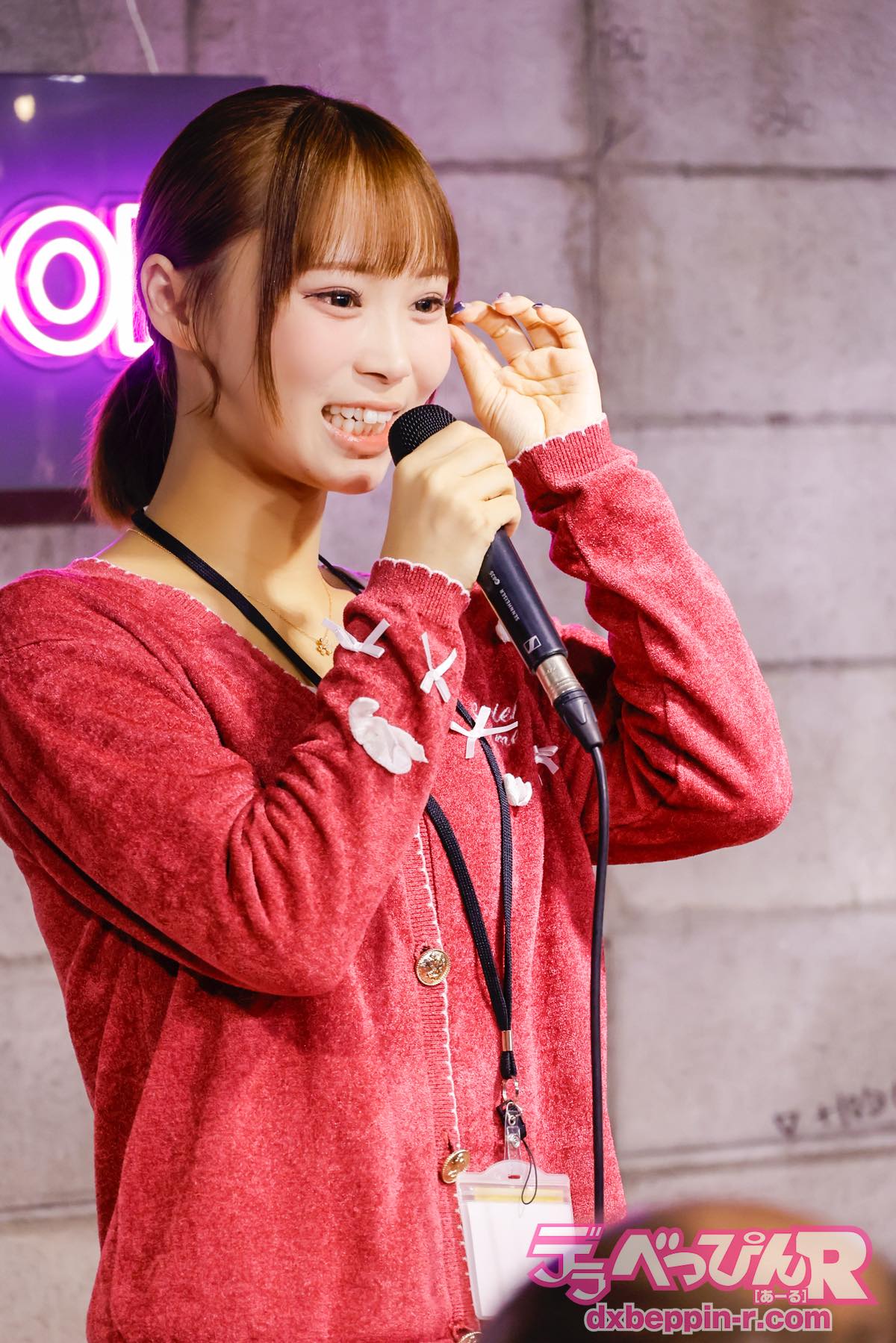 また、ななみちゃんが元演劇部だったので声が大きいという話題になり、由愛ちゃんと大声勝負に。由愛ちゃんは「大好き!」、ななみちゃんは「うしろの人まで見えてるよ!」と絶叫。ファンから勝敗のアンケートを取るとななみちゃんが勝利しますが、ここでふうちゃんも「大好き!」と絶叫。一番の大声でファンからは拍手が起こりました。