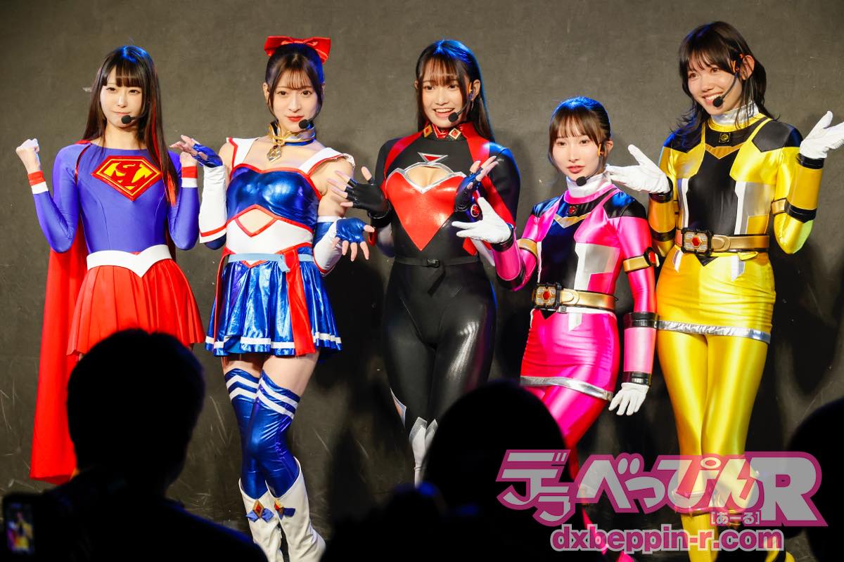 今回ステージに立ったのは、藤井レイラちゃん(チアナイツ・スカイ)、相坂すみれちゃん(コスプレイダー)、天美めあちゃん(スーパーレディー)、由良かなちゃん(ピンクアース)、岬さくらちゃん(イエローサン)の5名です。