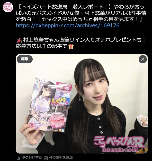 【トイズハート放送局 潜入レポート!】やわらかおっぱいの元バスガイドAV女優・村上悠華がリアルな性事情を激白!「セックス中はめっちゃ相手の目を見ます!」