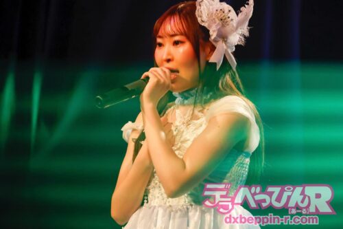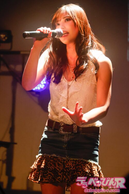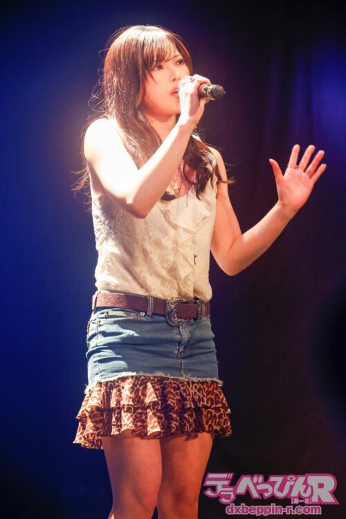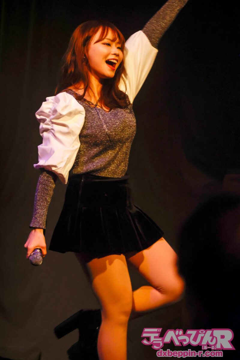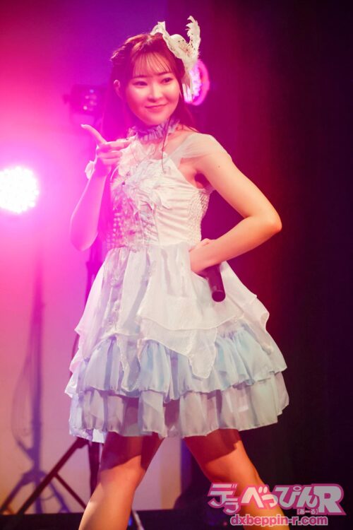 ミルジェネ主催のライブには初出演となる指原美奈ちゃん。アイドル衣装を身にまとい、明るく元気よくアイドル曲を歌い上げ、盛り上げ役としてトップバッターの役割を見事に果たしました。そのキュートな笑顔と明るいキャラクターはステージ向きです。