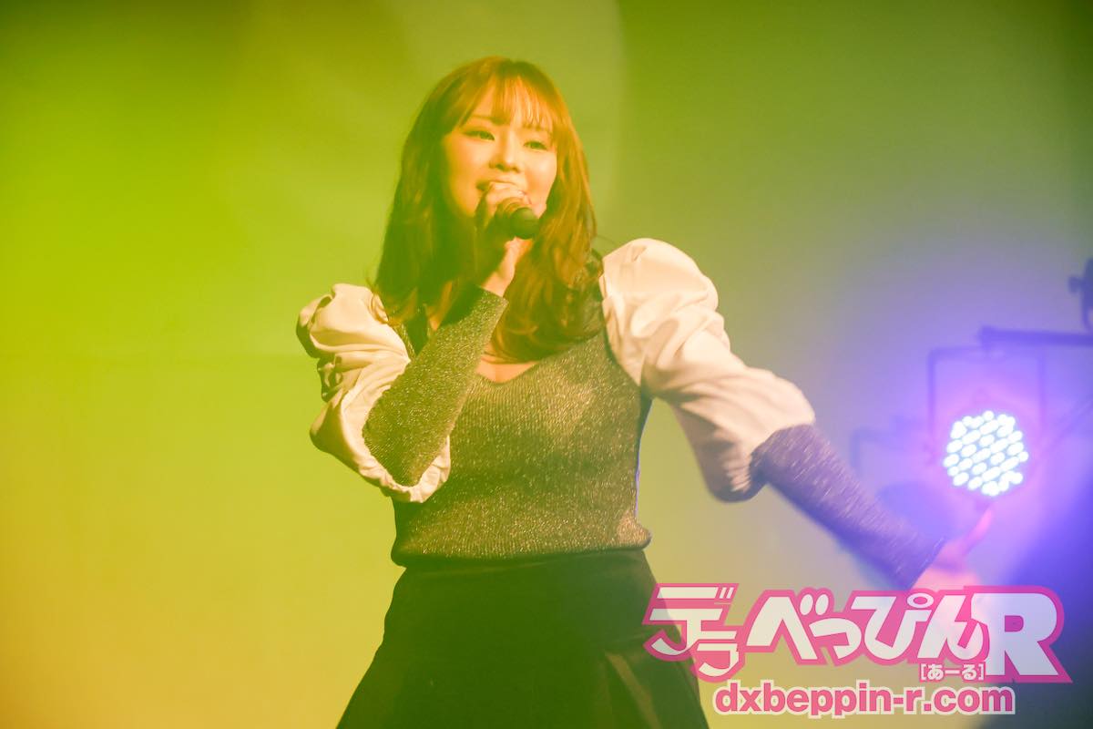 「10年ほど前にアイドルをやっていましたが、それ以来のライブです」と語っていましたが、ステージ慣れしている様子で完成度は高く、「80年代しばり」というテーマのもと、80年代に流行したアイドル曲を振り付きで熱唱。